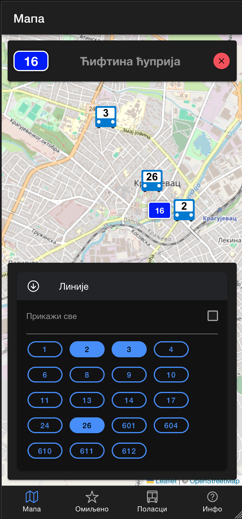 Добродошли у званичну апликацију за јавни превоз града Крагујевца!