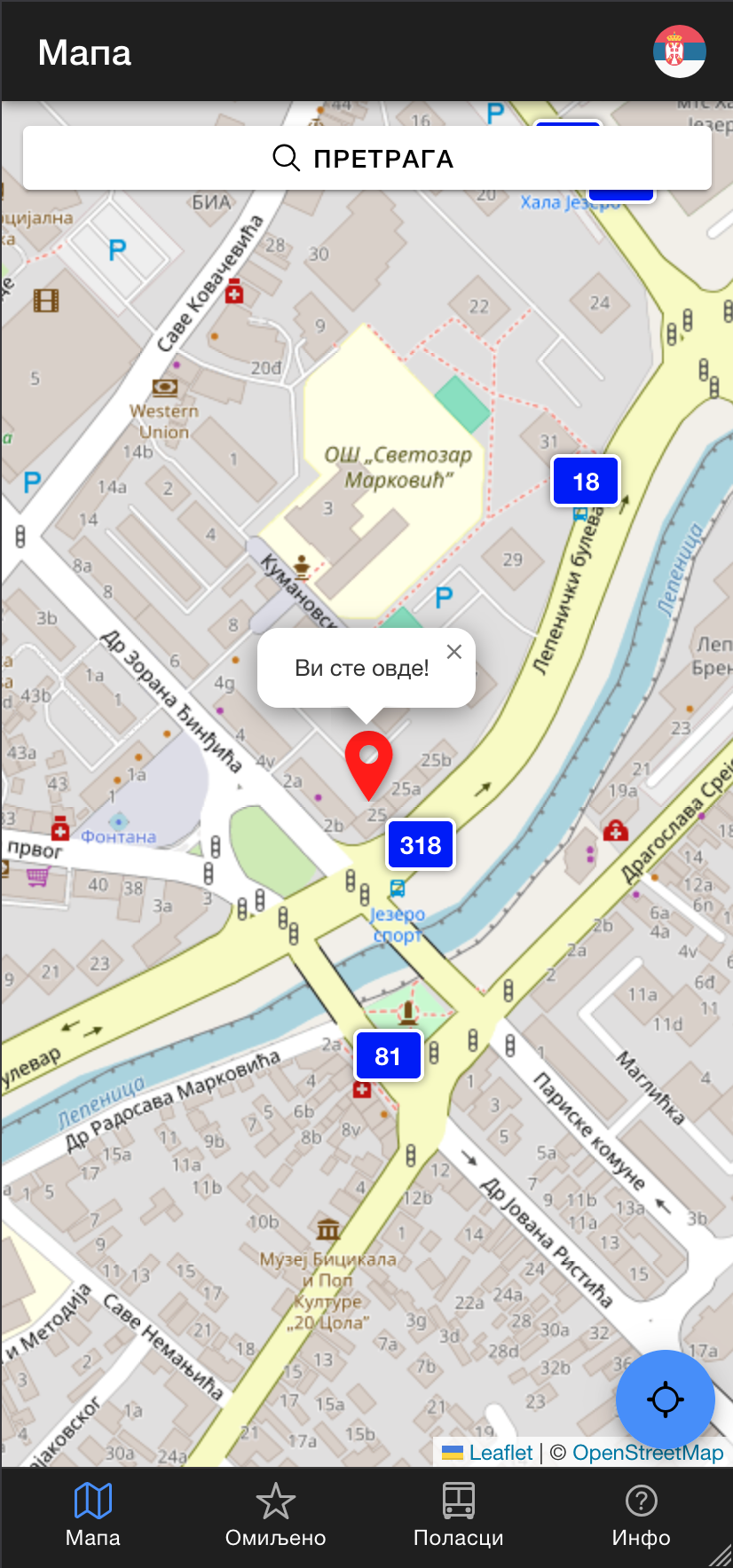 - Мапа стајалишта: Прегледајте сва аутобуска стајалишта на интерактивној мапи и брзо пронађите најближе или омиљене локације.