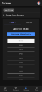 - Линије: Приказ свих стајалишта на једној линији у оба правца за лакше планирање путовања.
